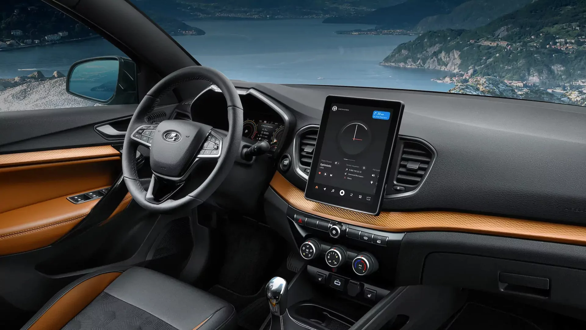 Пятиместная кабина удивляет простором. Багажное отделение — 440 литров, при сложенном заднем диване (пропорция 2/3) — до 760 литров. Климат-контроль создаёт комфортную температуру, подогрев сидений согреет зимой, обогрев стекла заменит ручную очистку льда. Мультимедиа LADA Enjoy Pro с Яндекс.Авто, Apple CarPlay и Android Auto превратит дорогу в удовольствие. Круиз-контроль поддержит экономичный темп.